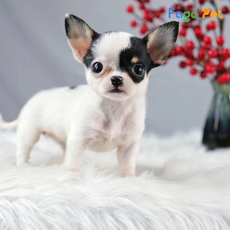 Điểm nổi bật nhất của Chihuahua mini chính là kích thước siêu nhỏ, thường chỉ nặng từ 1.5 đến 3 kg. Chúng có đầu hình quả táo, đôi mắt to tròn, biểu cảm và đôi tai dựng thẳng, linh hoạt. Bộ lông của Chihuahua có thể ngắn hoặc dài, với nhiều màu sắc và hoa văn đa dạng như đen, trắng, kem, sô-cô-la, vàng, hoặc phối hợp nhiều màu. Dù nhỏ bé, Chihuahua lại sở hữu một vóc dáng cân đối và chuyển động nhanh nhẹn, đầy tự tin, khiến chúng luôn nổi bật dù ở bất cứ đâu.