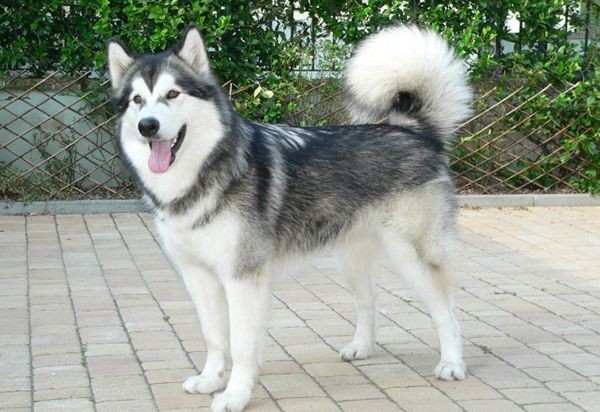 Chú chó có bộ lông màu xám tro và trắng, đôi mắt xám nhạt, biểu cảm về chú chó cho thấy sự oai phong và dũng cảm