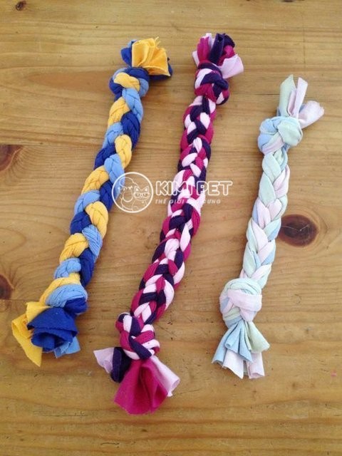 Đồ chơi kéo co làm từ khăn tắm cũ được bện chắc chắn, an toàn cho chó khi chơi tại nhà