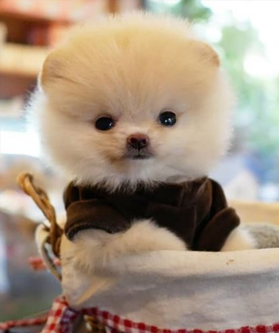 Chú chó Pomeranian với bộ lông cam rực rỡ và khuôn mặt xinh xắn, là một giống chó cảnh đẹp được nhiều người yêu thích |