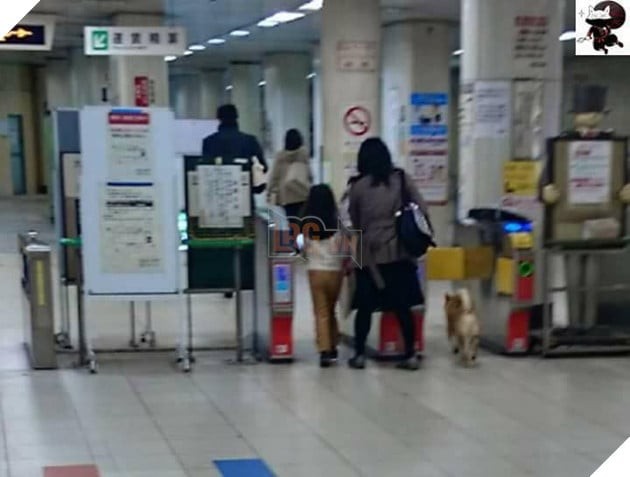 Hình ảnh chú chó hài hước bị nhân viên bế ngược khi cố gắng trốn vé tàu điện ngầm tại Nhật Bản
