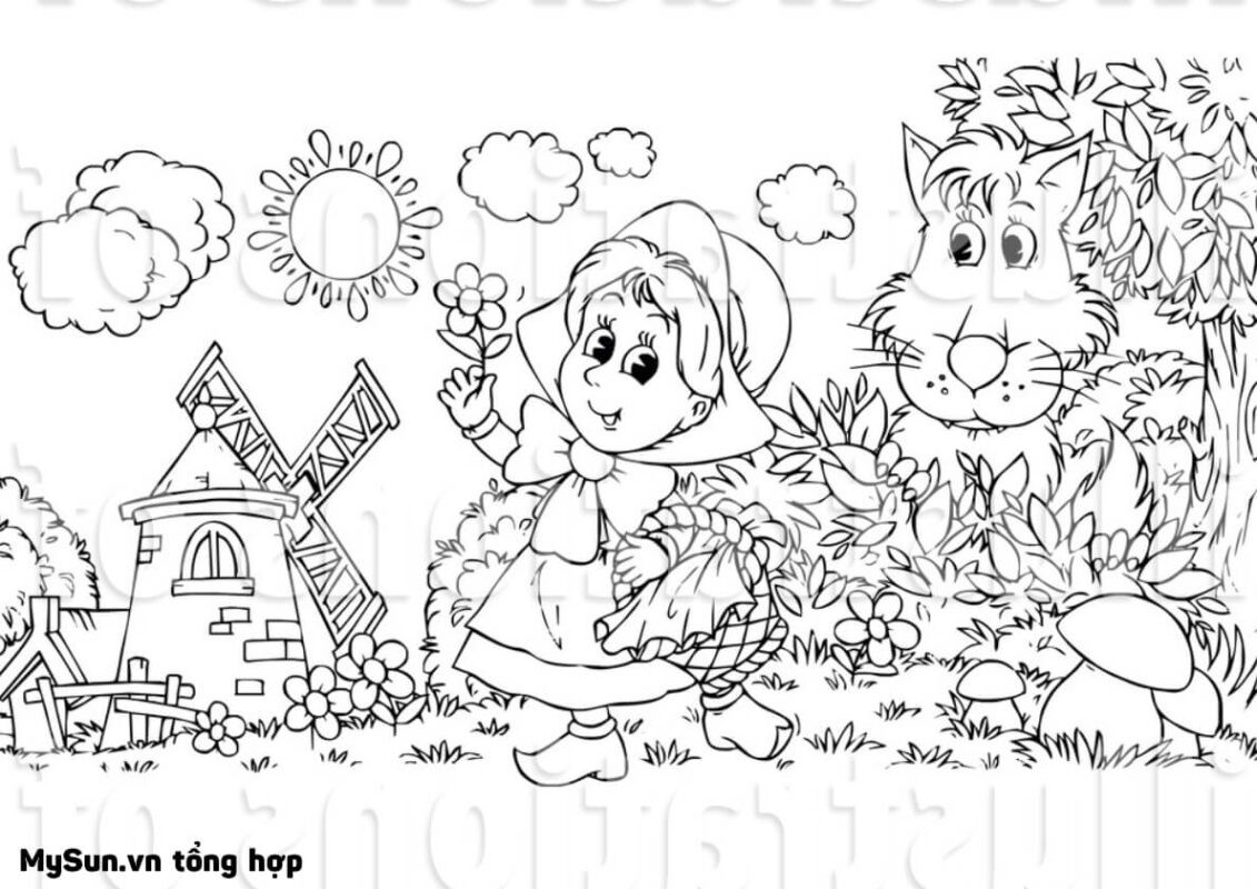 tô màu truyện tranh cổ tích cố gái quàng khăn đỏ thăm bà
