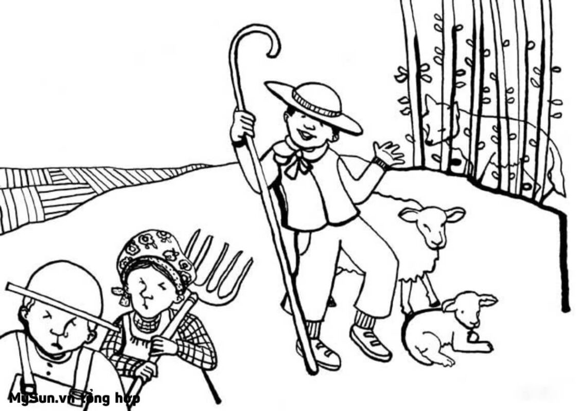 tô màu truyện tranh cổ tích hình câu bé chăn cừu nói dối