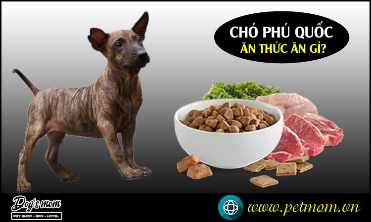 Protein là yếu tố quan trọng nhất cho sự phát triển cơ bắp. Bạn có thể cung cấp protein qua thịt bò, thịt lợn, thịt gà, cá biển. Chó Phú Quốc là giống chó biển đảo nên có thể ăn hầu hết các loại hải sản mà không gây ảnh hưởng đến hệ tiêu hóa. Chất xơ cần thiết cho hệ tiêu hóa khỏe mạnh, có thể cung cấp qua các loại rau củ quả như bí đỏ, cà rốt, rau xanh nên được xay nhỏ hoặc nấu chín mềm rồi trộn vào khẩu phần ăn hàng ngày. Tinh bột là nguồn năng lượng chính, cơm hoặc cháo là lựa chọn phù hợp, có thể bổ sung thêm khoai lang.