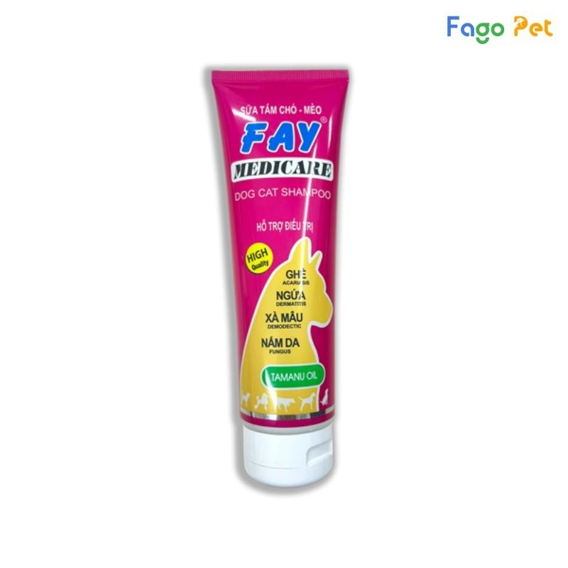 - Ví dụ tiêu biểu: Sữa tắm Fay Medicare. Dòng sản phẩm này thường được bổ sung các hoạt chất làm dịu da như yến mạch, hoa cúc, hoặc các vitamin nhóm B giúp củng cố nang lông. Fay Medicare không chỉ làm sạch mà còn hỗ trợ điều trị các vấn đề như ngứa, vảy gàu, và rụng lông do dị ứng hoặc các bệnh ngoài da nhẹ. Đặc biệt, nhiều sản phẩm trong nhóm này an toàn để sử dụng cho chó con, vốn có làn da và bộ lông mỏng manh hơn.