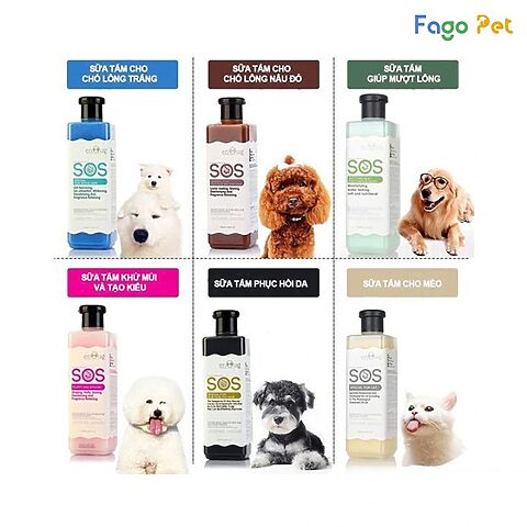 - Ví dụ tiêu biểu: Sữa tắm SOS Đa Năng. Sản phẩm này thường chứa các thành phần làm sạch nhẹ nhàng và dưỡng ẩm, giúp loại bỏ bụi bẩn, dầu thừa mà vẫn giữ được độ ẩm tự nhiên của da và lông. Các loại sữa tắm đa năng như SOS thường có mùi hương dễ chịu, lưu lại trên lông chó sau khi tắm, mang lại cảm giác tươi mát. Chúng phù hợp cho việc tắm rửa định kỳ, giúp lông chó luôn sạch sẽ, suôn mượt và giảm tình trạng xơ rối.