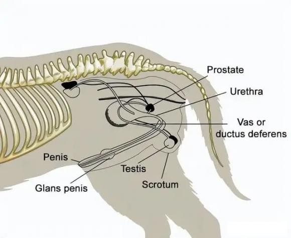 Điểm đặc biệt đầu tiên ở chó đực là sự hiện diện của xương dương vật, hay còn gọi là baculum (os penis). Đây là một cấu trúc xương nằm bên trong dương vật, giúp duy trì độ cứng cần thiết để dương vật có thể thâm nhập vào âm đạo chó cái mà không cần phải phụ thuộc hoàn toàn vào áp lực máu như ở nhiều loài động vật khác. Chính nhờ xương này, chó đực có thể thực hiện quá trình giao phối một cách hiệu quả hơn. Baculum là một đặc điểm tiến hóa phổ biến ở nhiều loài động vật có vú như gấu, hải cẩu, dơi, nhưng lại vắng mặt ở con người và một số loài linh trưởng khác.
