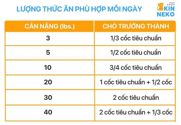 Bảng hướng dẫn định lượng thức ăn cho chó thịt theo cân nặng